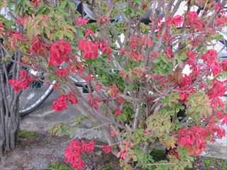 買い物の途中でサツキのはが赤く紅葉してるのをみつけました。