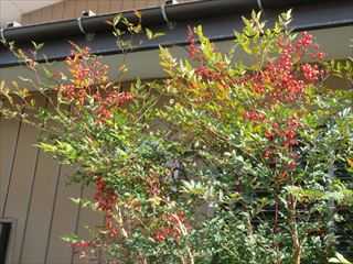 買い物の途中でナンテンの実が赤くなっているのを見つけました。