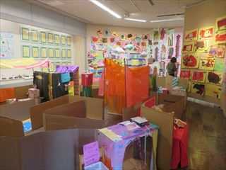 大崎市民ギャラリー緒絶の館で子どもたちが日頃から製作した作品を展示して ます。マーガレット(年長)組、あさがお(年中)組、ちゅーりっぷ(年少)組 の順に展示してます。子供たちの多くの力作があります。 マーガレット(年長)組は多くの共同作品があります。 あさがお(年中)組は多くの力作を展示。 ちゅーりっぷ(年少)組は子どもらしい作品が。