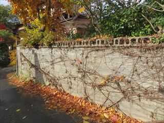 我が家のブッロクの塀にはったツタの葉が散りました。