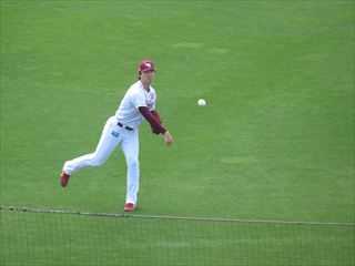 先発の荘司投手は9回を1失点の好投したが打つ方は2回に先制された1点を 返しただけでチャンスを作るがタイムリーが出なかった。延長になり11回に ソロホームランを打たれ負けてしまった。 試合前キャッチボールする先発の荘司投手。