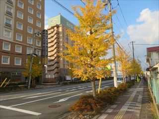 駅前通りイチョウ並木が黄色になっているのを見つけました。