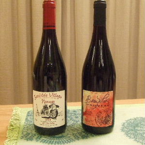 昨日、何気なくスーパーに行ったら、ボジョレー・ヌーヴォーが山積みされていました。そして、隣の売場にはシャンメリーとクリスマスの長靴お菓子。自分の中では、<ボジョレー=そろそろクリスマスの準備でもしようか>と言う図式が、ここ数年で確立しつつあるので、「そっか~、もうそんな時期か~。」とワイン売場の前で一人勝手にしみじみしていました。閑話休題。一本2000円も出せば、ボジョレー・ヌーヴォーでなくともそこそこのワインが買えますが、このワインはこの時期しかないので、まぁいいか~と、レジへ直行。さまざまな種類のあるボジョレー・ヌーヴォーですが、選ぶも何も、そこのスーパーには2種類しか置いてなかったので、とりあえず両方買ってみました。しめて4500円くらい。私は、ワインの味は良く分かりませんが、ボジョレー・ヌーヴォーは、その年に収穫されたワインで造られる「新酒」で、その製法上、赤ワイン独特の渋みは少なく、口当たりも良いので赤が苦手な人でも飲みやすいのではないでしょうか?我が家では、晩御飯は夕べの残りの鯖の味噌煮でいいや~と思っていたのですが、さすがにワインに味噌煮は合わないので、急遽シチューを作って、晩秋の風物詩を堪能しました。 さて。なぜ、わざわざワインを別の容器に 移し替えたかというと・・・ 答え。キャラがボトルをなぎ倒し、 ヒビが入ってしまったから。 でも、割れなくて、本当に良かった・・・。