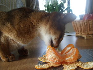 あけましておめでとうございます今年もよろしくお願いしますと言うことで。トモ蔵の新年一発目の初笑いは。。。 みかんを喰らう宇多丸 みかんに興味津々なので(と言うか、すでにかじられてたんだけど)試しにちっちゃいの ひと房あげたら、食べたよ!!猫って柑橘類は苦手だと思っていたんだけどコヤツには猫の常識は通用しないらしい(笑)しかも、みかんの皮まで食べようとするので、油断ならない・・・ちなみに、イチゴも大好きです。2度ほどやられました いつもお世話になっているかわネコさんから、かわいい年賀状頂いちゃいました ベンガルのジェシー君ですあぁ、あのおなかに顔をウズメタイ それでは皆様、今年もよろしくお願いします