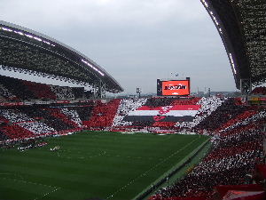 浦和レッズVSヴァンフォーレ甲府の試合に行って来ました3-0で浦和が勝ちましたね。コレで、リーグ初優勝イケそうですねダンナが強烈なレッズサポで、私はおまけでついて行ったのですが優勝が懸かっているだけあって、スタジアムはマッカッカで、すごい熱気でした~レッズサポはすごいですね~。特にネット裏。あの応援を見ているだけでも飽きません。ゴール裏には、時々裸族が現れます。上半身だけですけど(当たり前・・・)今日は残念ながらいませんでしたけど、去年の新潟での最終戦には、あられの降る中50人はいたでしょうか・・・肌色の人達が。サッカーよく分からなくても、そんな人達を見ているだけで楽しいです。さて、今日はアウェイ側・バックアッパーの、ちょうどコーナーの真上で観ていたのですが、前半は本当にヒヤヒヤしましたまさに目の前で、アレックスがスカッと空振りしたかと思えば、ワシントンはPKを2本も外し・・・←2本目のPKです・・・ま、勝ったから良いのですが、せっかくだったらもっと近くでゴールを見たかった・・・だって3点とも後半だから、遠くてよく見えなかったんだもの・・・でも、山田のゴールはすごかったですね~。あと、平川のドリブルも。早いですね~~。 日曜日いよいよ王手です。ダンナは味スタに行くといってました。こんなことなら私もチケット買って貰えばよかったかな・・・仕方ないので、私は家で輪飾りこしらえながら、祝勝会の準備でもしています。