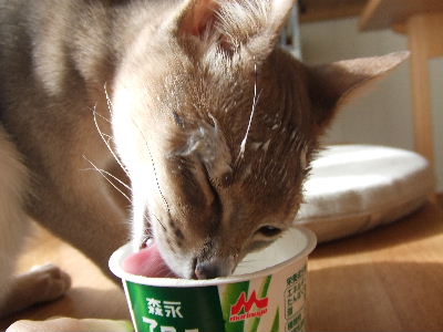 キャラちゃんの幸せなひと時 トモ蔵のお下がりをペロペロペロ・・・ あ~あ、顔中ヨーグルトだらけにしちゃって・・・ キャラちゃんは何でも大好きだけど、特に乳製品には目がないの。ヨーグルトはフタを開けるだけで、もう大騒ぎ。もちろん、アイスや生クリームも大好きでも、食べ過ぎると、お腹こわしちゃうからね。どんなに大好きでも、これ以上はあげられません~ わっ!!前が見えないニャ!! 必ず一回はコレをやって慌てる。 先週末から義姉の引越しの手伝いで、ほとんど家を空けていたのでまったく構ってあげられず、ニャンズはちょっと欲求不満気味それにしても、引越しって、本当に疲れるね普段あまり馴染みのないことだからかな?特に何かをしたわけでもないのに、体中が筋肉痛なのは何故なのか。でも、アジアンリゾートっぽい素敵なお部屋が、出来あがりました籐製のソファーとか、くわずイモとか、そんなのが似合う部屋もいいなぁと思ったけどウチじゃニャンズが爪とぎして、イモもかじって、一週間も持たないだろうな(笑)