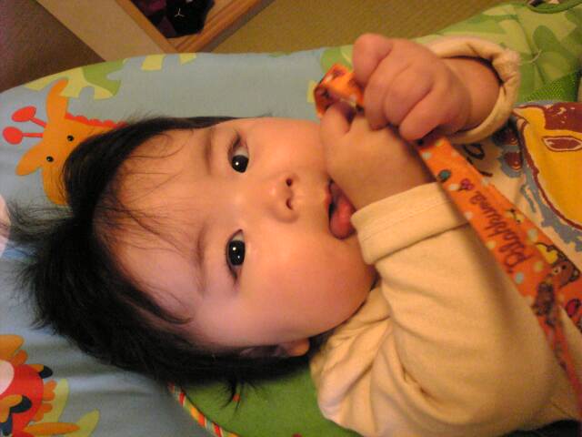 最近、物を器用に掴めるようになって来た娘。