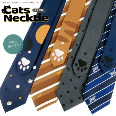 スーツ必須な職業の方におすすめします🐈⬛ネクタイの下の方に柄があるのでジャケット羽織ると見えない✨シンプルネクタイに見えるのに、こっそり猫柄💕ひっそり可愛いアピールして下さいね(*´艸`*) 💕\送料無料/【Bluebelland 猫柄ネクタイ】猫 肉球 猫の手 サバトラ 茶トラ 黒猫 三毛猫 ストライプ ドット カジュア スーツに似合う 個性的 おしゃれ 猫好き プレゼント