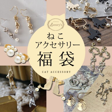 ワクワクドキドキな福袋。猫モチーフアクセが色々入ってお得🉐どんなアクセが入ってくるのかお楽しみ✨友達と一緒に買って交換するのが良いと思うけど、全く同じ商品が入ってたら辛いかも、、、。全品対象クーポン配布中!福袋 ネコアクセサリー イヤリング ピアス 猫グッズ ねこ ネコ 猫 にゃんこ イヤーアクセ レディース 女性 Luxury's ラグリーズ クリスマス
