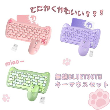とっても可愛い猫型キーボードとマウスのセットです!なんたる可愛さ(*´꒳`*)これなら仕事も捗りそう💕可愛すぎてテンション上がります!【10%OFF】【送料無料】パソコン用キーボード マウスセット テンキーレス 2.4GHz無線 薄型 小型静音 かわいい猫耳 84キー軽量光学式 防水 USBレシーバー共用 5ボタン マウス コンパクトWin10/8/7/ Vista/Win XP/Win 2000/Macに対応 誕生日/ひな祭り/ 新年/ プレゼント