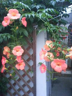 玄関先のノウゼンカズラがものすごい数の花を咲かせててます