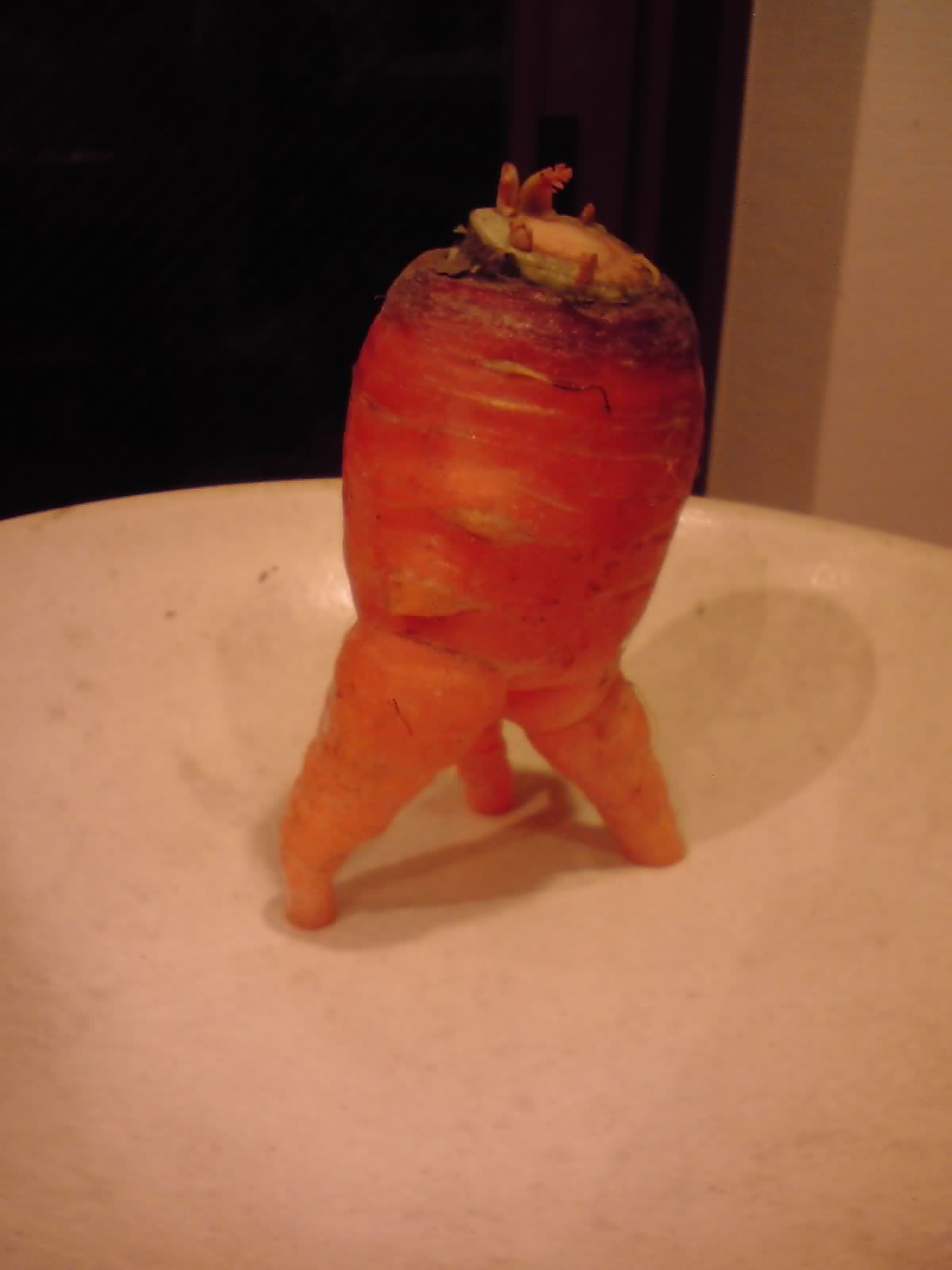 明けましておめでとうございます!昨年は更新がずいぶんおろそかでしたけど、今年はもう少し頑張って写真もUPしていきますよ~年始の休み中は、子供が風邪をひいてしまったこともあり、あまり外出せずに家で餅と鍋の繰り返しでした・・・そんな中、年末に実家から送られてきた野菜の中に、艶かしいポーズの人参を発見!変な形の人参や大根は時々ありますが、今回はバランスも抜群で3本の足でしっかり自立してましたなんだか、おめでたい?って事にしておきましょう。