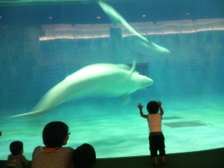 こんにちは。今年の夏は、雨が少ないですね~庭の木も花もグッタリしていて、特に、今までずっと元気だったシマトネリコの葉が枯れてきていたのにビックリ昨日はプールを出して、遊んだ後は庭木にもたっぷり水をあげときました。さて、私は昨日まで振替休日を駆使して3連休にして、島根の水族館「アクアス」に行ってきました。アクアスの名物は、白イルカです。特に、昨年生まれたばかりの子イルカも見れるという事で、先日もたくさんの家族連れが来てました。ちなみに、水槽にへばりついているのが我が子ですちなみにお姉ちゃんは、最初は盛り上がっていましたが、白イルカのプールを過ぎて、アシカショーが始まる頃には「普通のイルカが見たい」と言って、若干テンションが下がってましたアクアスには、普通のイルカがいないんですよね~ごめんよ~最終的には、敷地内にある長い滑り台に行きたいと言って、飛び出すように水族館を後にしました・・・上の子には、遊園地の方が向いているみたいですね
