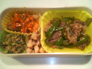 こんばんは。今年の夏は雨が少なかった分、ココにきてあいにくの天気が続きますね~庭木達の喜ぶ声が聞こえてくるようですさてさて、先週の休みからうちの家族は妻の実家に里帰り中です。最近、料理をちょっとサボり気味だったので、昨夜は腕によりを掛けて豪華弁当を作りました。牛肉とピーマンの炒め物、ハマチの照り焼き、タコのピリ辛、小松菜の胡麻和えです。夜中のスーパーに買い物に行ったら、賞味期限の近い食材があったので、つい買いすぎちゃいました。今度は何を作ろうかな