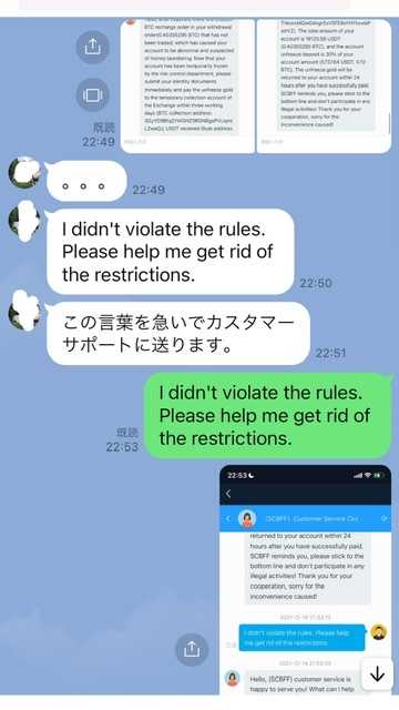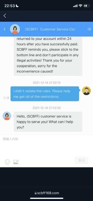 どうして出金できていないのか、SCBFFのサポートセンターに問い合わせするように促されます。
