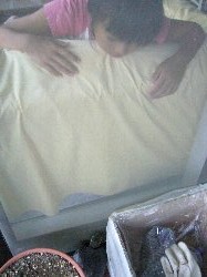 昨日は あと一歩のところで見つかってしまった【かめきち】。今日も網戸に近づきますが・・・今日はダンボールに阻まれて網戸を開けることができませんでした。