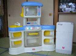 娘がまだ2歳の頃。沖縄に住んでいて、毎週のように通った米軍基地のフリマで買って小田原まで持ち帰った大型オモチャのキッチン&冷蔵庫。息子と英語教室が同じ同級生の女の子に使ってもらうことにしました。色々な思い出があるオモチャ。娘が色々とお料理を作ってくれたり、息子は基地のように並べて隠れて遊んだり・・・でもやはりトミカやプラレールのように頻繁には遊ばないし、身体の大きな息子にはやや小さく見えるし・・・思い切って息子に話してみると、半年前は「やだ、遊ぶ~」と言っていたのですが今回は「いいよ!もうお兄ちゃんだからね」という返事。娘は「まだちょっと遊びたかったな」なんて言っていますがそれこそ背の高い娘の膝の高さのキッチンでは腰が痛くて遊べないや・・・と苦笑い。色々な想い出があるからこそ、大切に遊んでくれる人に遊んでもらったほうが、オモチャも嬉しいかな?と思います。キッチンが無くなり、ちょこっと和室が広くなりました。