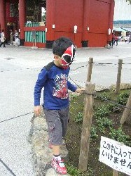 昨日は運動会の代休。息子も保育園をお休みさせて東京まで。まずは浅草。神谷バーが開店するまで浅草寺の辺りをぶらぶらと。外国人のお客さん目当てに刀や忍者などにちなんだグッズが沢山!「ほらほら、シンケンジャーだよ!」と刀のおもちゃを薦めてみましたが興味なし。見つけたシンケンレッドのお面を父にねだり買ってもらう息子。神谷では本当は1階のバーで飲んだり食べたりしたいところですが子どもたちにとってはタバコの煙とかがイヤみたいなので今回は2階のレストランフロアーへ。神谷のお子様ランチ。美味しそうです。(これだけでも充分に呑めそうです)お腹を満たして、次は四谷まで。「東京おもちゃ美術館」前から気になっていたのですが、混んでいるかなぁと躊躇していた場所。振替休日の今日は空いていたので充分に楽しめました。お姉ちゃんは同じ長さなのに木の質によって音階になっている木琴がお気に入りだったようで、「もう飽きてきた」と言いながらも何度か弾きに行っていました。息子は想像力がフル全開!ちょっと上のお兄ちゃんとキャプテンごっこ?をしていたようで走りまわっていました。ここ「四谷ひろば」は旧四谷第四小学校の校舎。校庭を見たら、グリーンと赤のコートされた校庭が!懐かしい!!そう、東京の学校の校庭って同じ感じ!すっかり娘の学校の砂の校庭ばかり見ていたので懐かしさでいっぱいでした。