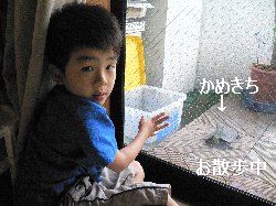 先週、ダンナさんはハワイに行っていました。そのダンナさんも無事、成田の検疫を通り帰ってきました。その翌日、かぴぱらさんと恒例のランチ。『いつもの場所で、いつもの時間に適当に集合』。。。いったいどれくらい恒例化しているのか?ってくらい 緩やかな約束だったりして。。。。。たっぷりおしゃべりして、帰りにホームセンターに寄りグリーンカーテンのための補強金具を購入。育ってくると、カーテンの重みがかなりのものになるので補強しないと・・・と思っていたら・・・カーテン落ちました買ってきた金具を早速ダンナさんにつけてもらいました。たまには かめきちの様子でも。心なしか、今年はあまり餌を食べないような気がします。ベランダを歩き周っているんだけどなぁ???
