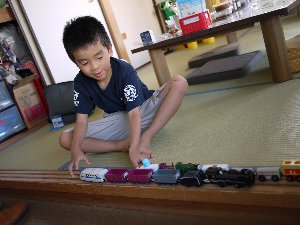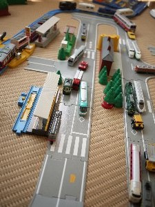 最近、レールだけではなく道路も繋げて、実際の街を再現して遊ぶ息子