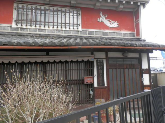 例えば、この「商店」の玄関口の上にこのような漆喰飾りがある。