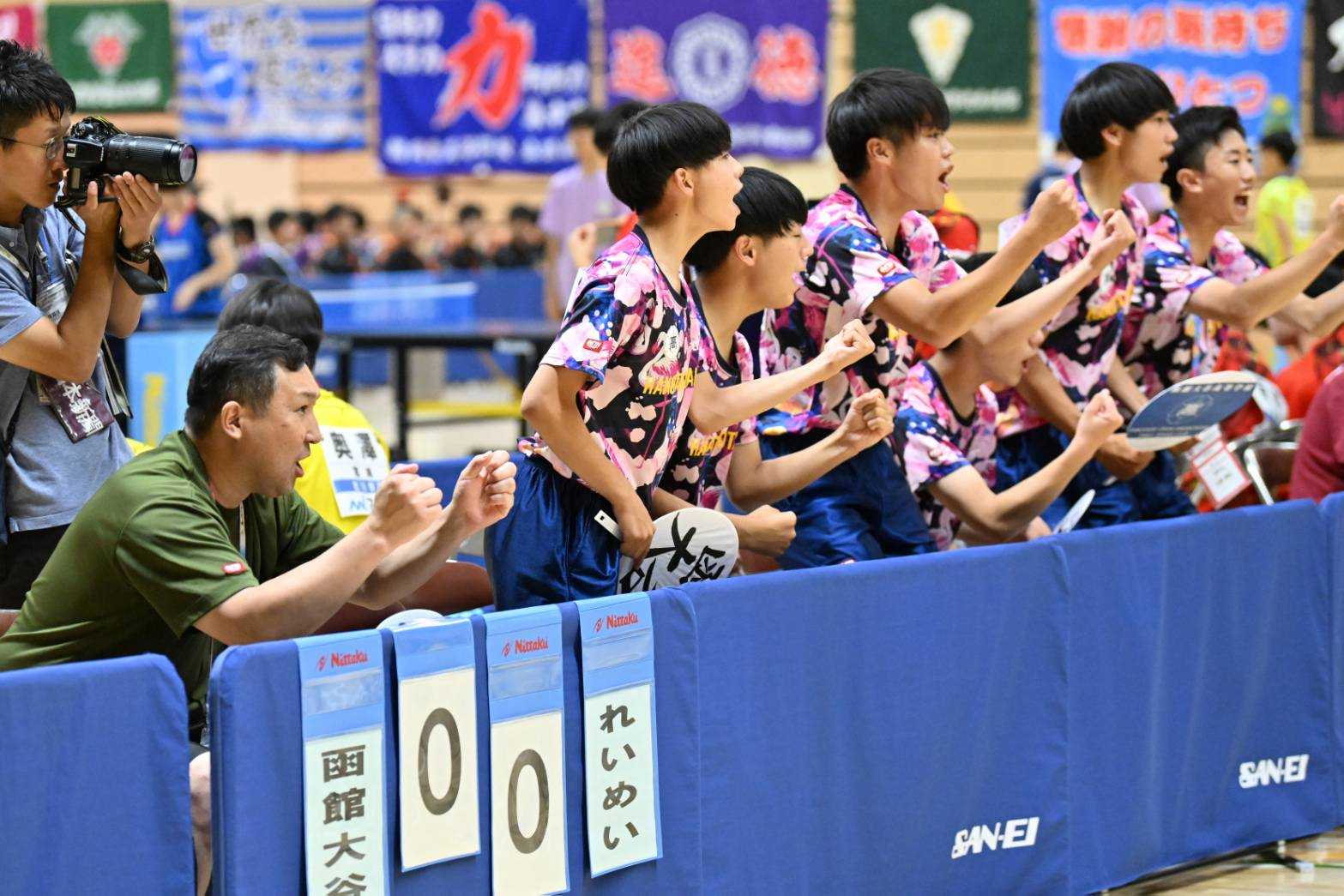 昨年、全道大会団体戦で会場を盛り上げた「猛将K先生」です。まさに勝利のVサインでした。旭川永山南中の監督を務められ、中学から卓球を始めた選手で見事に「全中」を獲得しました。上川管内大会では準優勝でしたが、全道大会に向けて着々と準備をしていたそうです。さすがでした。今年転勤されたそうですから、また、数年後を楽しみにしております。(笑)さて、今年の中体連は先日お伝えした通り「八雲町」です。気温、湿度ともに最高潮に上がり、体育室内は恐ろしいほどの状況になっているそうです。個人戦は本日ベスト16までを決めます。あぁ思い出してしまいますねぇ(苦笑)カデット14チャンピオンを倒して16入りしましたが、8決定戦を落として代表決定戦に回り1回目を3-0で勝ち、決定戦はカデット13チャンピオンに対し、ファイナルゲーム9-5からジュースに持ち込まれての敗戦でした。思い出しますと未だに冷や汗が出ます(笑)20年近くも頑張っていると数多くの代表も数えますが、もちろん後一歩で涙を飲んだことも多々あります。ベンチに入っていたり、観客席で応援していても「楽しいと思ったり、感じたりしたことは一度もございませんねぇ」男女各16名は誰になったのかはぼつぼつと聞こえては来てますが、惜しくも敗戦となった方々のことを考えると、ここに勝者を記載することは出来ないのでご容赦いただきます。申し訳ございません。皆様のご健闘をお祈り致しております。