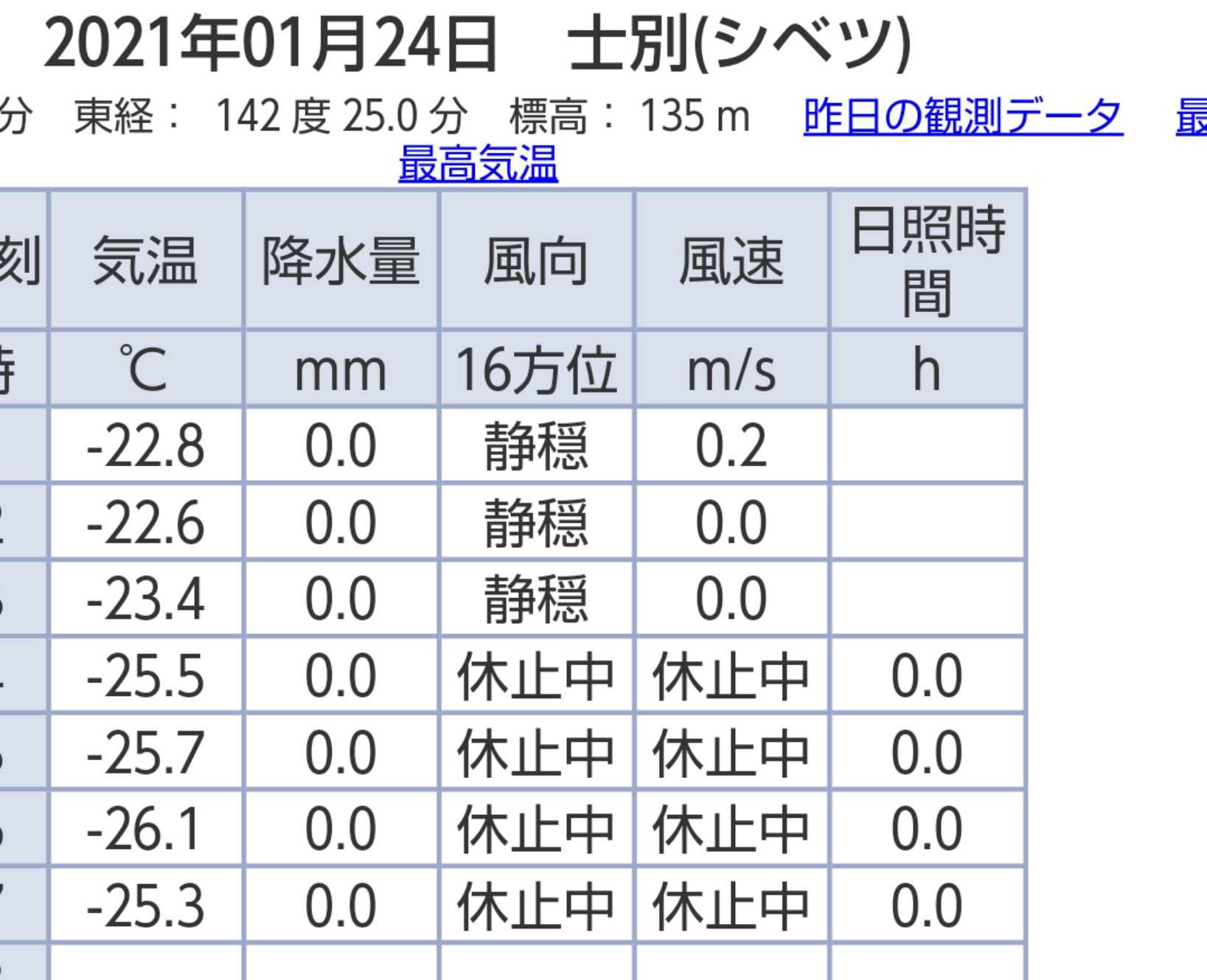 最高気温がマイナス19.2度…何が最高なのか(苦笑)