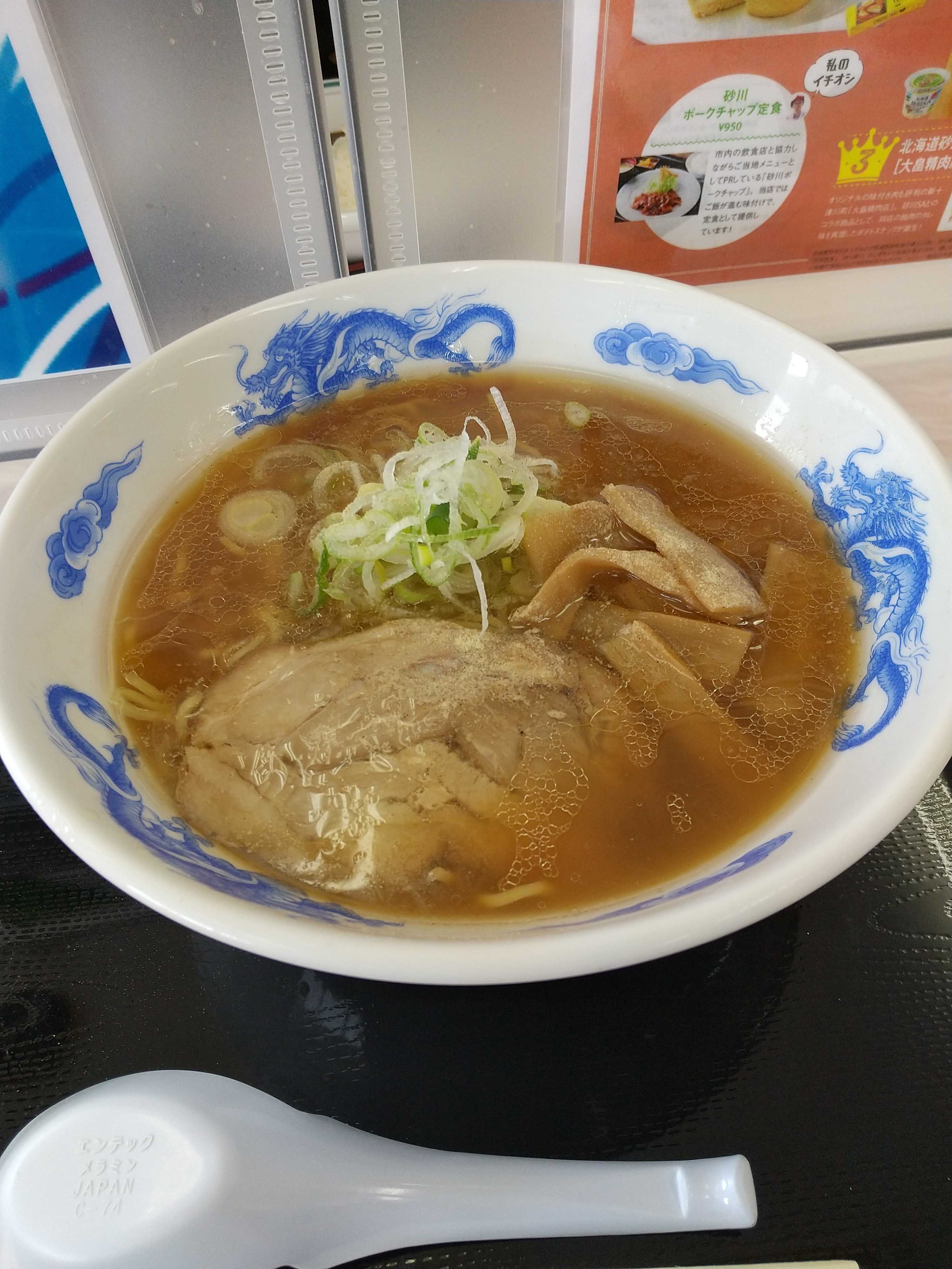 砂川SAです。歩夢は醤油ラーメンラーメンミニカレーセット。私は醤油ラーメンです。