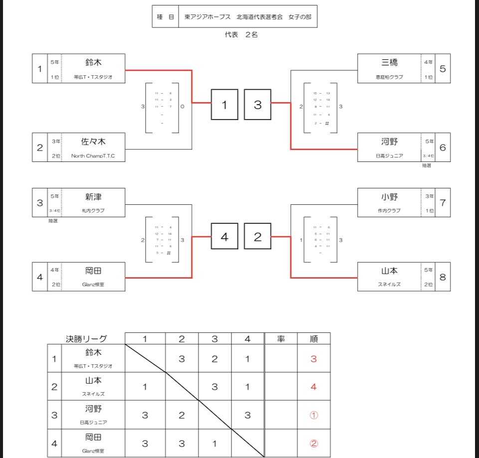 全国ホープス選抜、東アジアホープス北海道予選