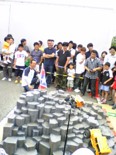 ★レーシングコースの横に、トレイルのコースがあり、早く頂上に登ったラジコンカーが勝ちです。