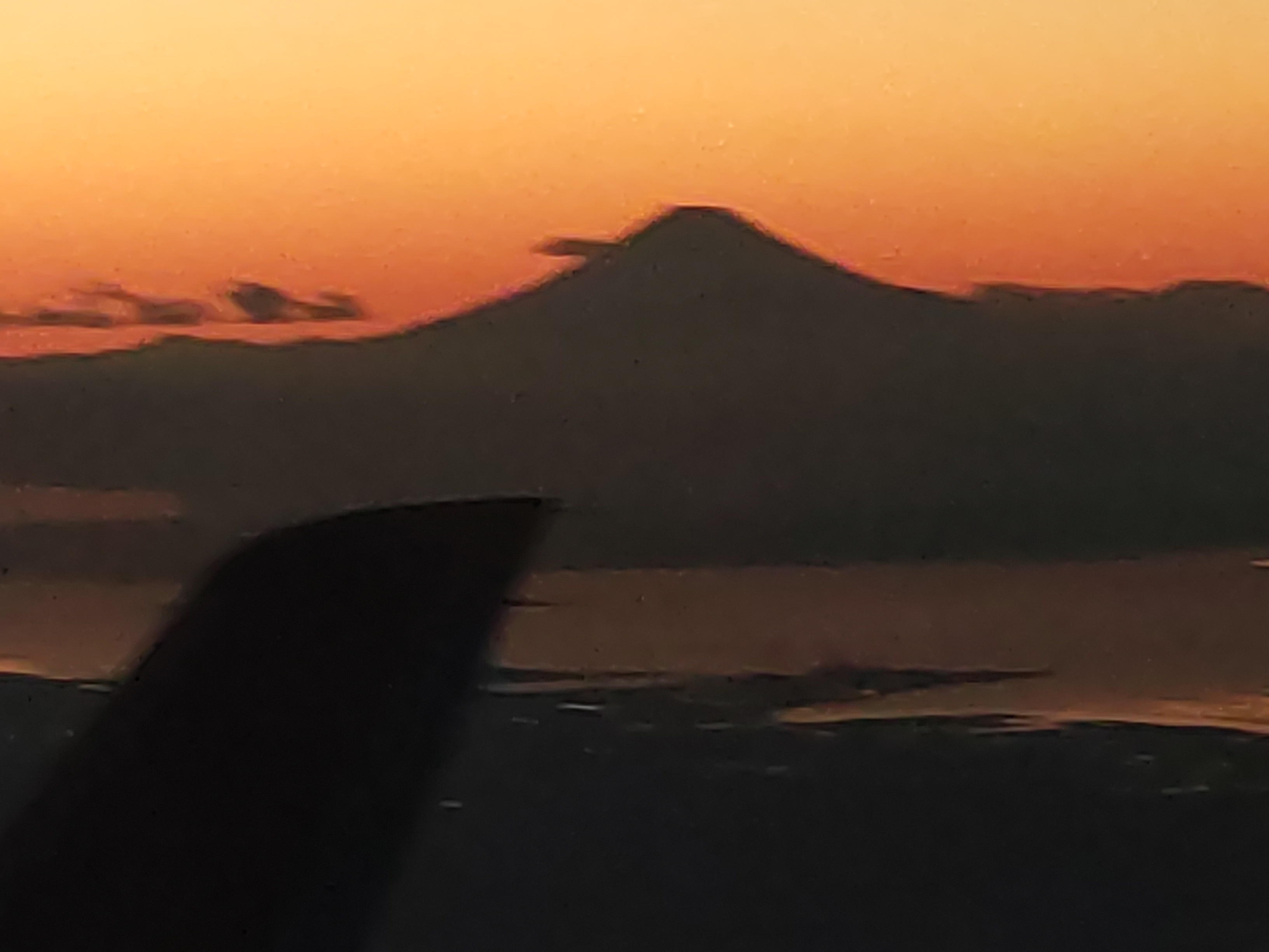 おとといの夕方にANAで秋田から羽田向かいました。夕焼けの富士山を久々に見ました。ラッキー。いつもは左側の座席をなんとはなしに選んでいましたが、今回はちょっと変えてみようかと。前回は鎌倉の腰越海岸からだったかなー今回の旅も幸先がいい。十分楽しめそうです。