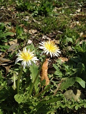 昨日の雨からうってかわって、春らしいお天気に。早速公園遊びに出かけました。飛行機を飛ばしてみたり、遊具で遊んだりしたあと、森の小径を散策。R&Lに野草の名前を教えながら進んでいくと、白い花を発見。なんの花かな? よくよく見ると、葉っぱはタンポポ。タンポポって、でも黄色だし・・。花の下の総苞は反り返らずに内側についていて、形状はカントウタンポポ。「さんぽずかん、持ってくればよかったね~。お花の名前はお家で調べようね。」と、写真をパチリ。帰ってきて、図鑑で調べたら、やっぱりタンポポ。「シロバナタンポポ」という種類でした。いろんな植物が出てきているので、なかなか楽しい。この次は、ちゃんと図鑑を持っていかなくちゃ。