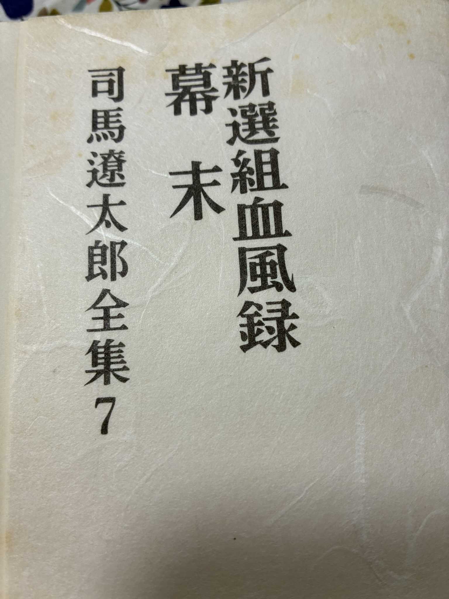 燃えよ剣も無事読破したので、また司馬遼太郎さんの本を図書館で借りてきた。司馬遼太郎全集7、”新撰組血風録”と”幕末”が収められています。(全550頁)当面は幕末前後の本を読んでいこうと思っています。この本、昭和52年(1977)の第4刷です。もう48年前ですが、図書館でしっかり管理しているのか、しっかりとした書籍です。誤って破損とかしない限りは、まだまだ読み継がれるのでしょう。