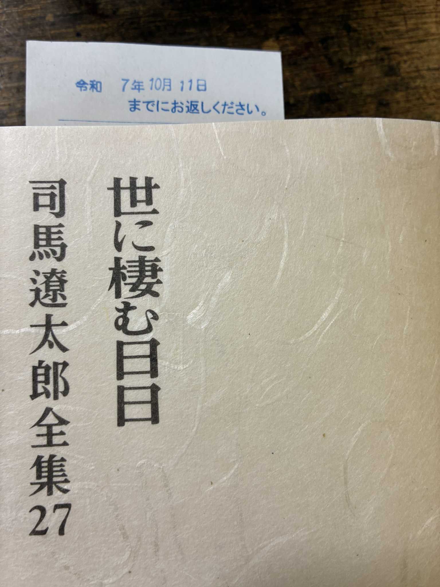 ”酔って候”は早々に読み終わったので、次はこれを借りてきました。↑↑世に棲み日々1969年から週刊誌に連載されたものらしい。司馬遼太郎全集27として昭和48年4月30日発行の書籍、全部で614頁に及ぶ。幕末に活躍した吉田松陰や高杉晋作を描いた小説。ちょっと長いけど、何とか返却日までに完読するぞ!
