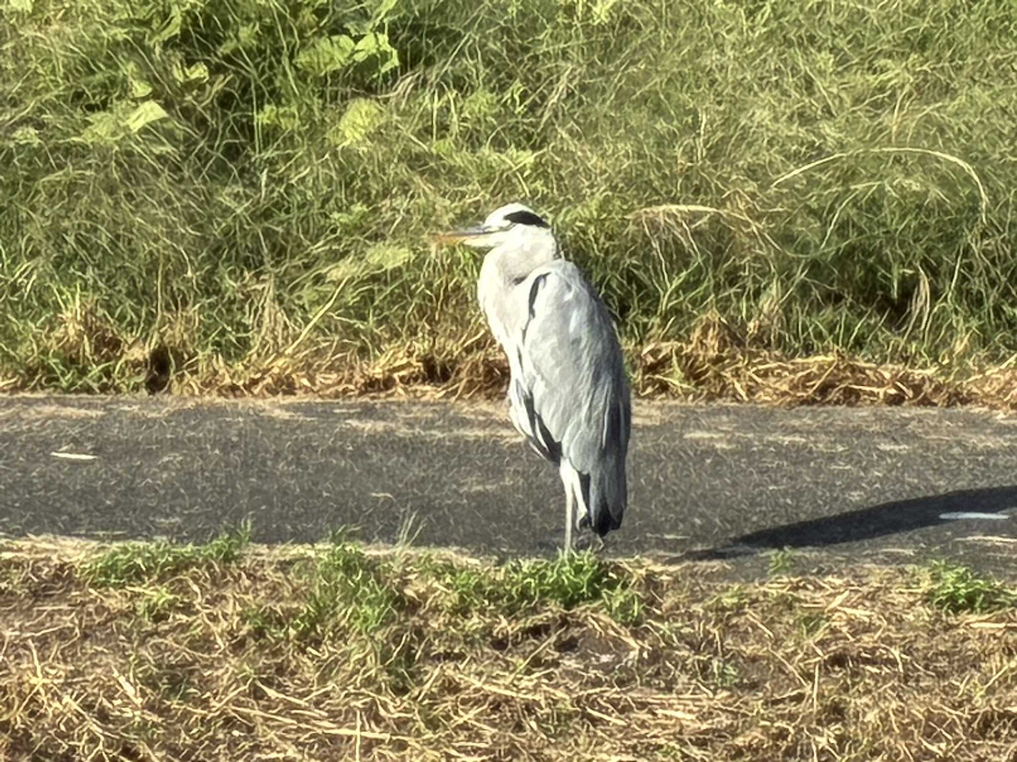 よくみかける鳥↑↑アオサギいつものウォーキングコースで時々見かけるアオサギ、だいたい一羽で佇んでいるが、まれに二羽で居るときもある。人の姿を見つけると、ほとんど飛び去って行ってしまう。シラサギも稀に見かけるが、すぐに逃げてしまい、ほとんど写真は撮れない。ウォーキング中、まだまだ残る自然に触れるのもストレス発散になる。