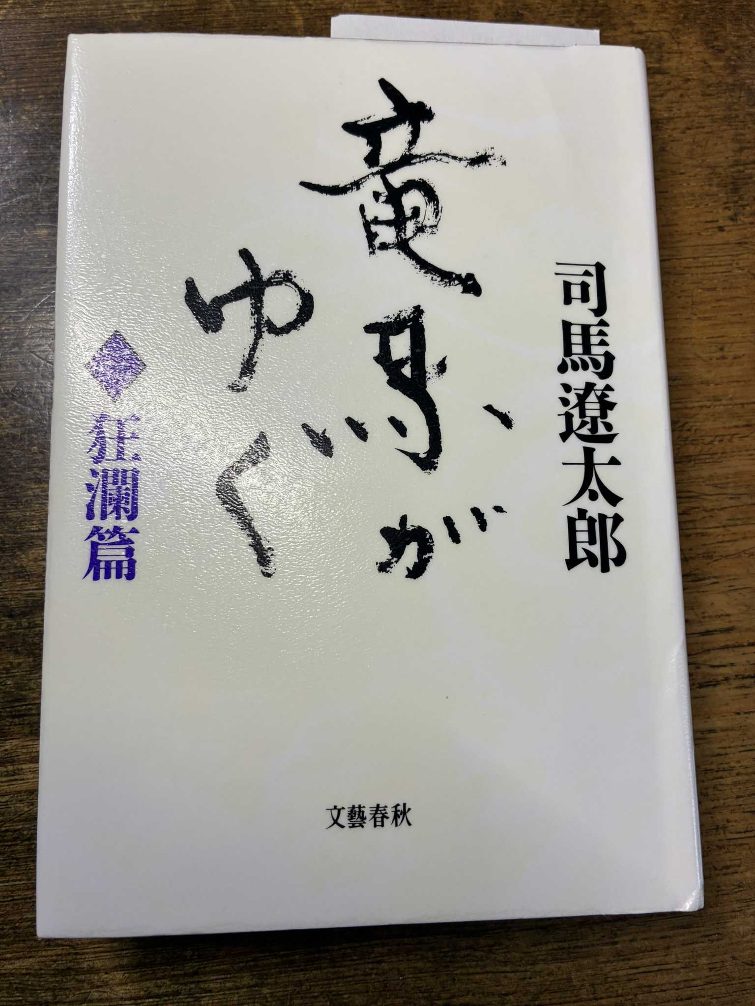 ”竜馬がゆく”(3巻目、狂瀾編)を完読し、次のを借りてきた。単行本3冊目の怒涛編(下記写真)です。本の裏面に”しみあり”と貼られていたが、表紙を開けると僅かに染みがあるだけで、ほぼ問題なし。これを借りてきた後、ちょっと別件のお薦め小説があったので、そちらを読んでた。それはおいおい紹介したいと思う。↑↑竜馬がゆく、怒涛編池田屋の変、禁門の変が過ぎたので、これから、亀山社中や海援隊、薩長同盟と続いて行くのだろう。幕末のことも面白いですが、竜馬を取り巻く女性たち(さな子、お田鶴さん、お登勢さん、おりょうさん)の描写も何とも面白く、よく爆笑するw。さて読み始めるとします。