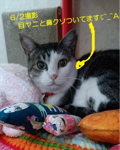 先週ミランのワクチン接種の際、目ヤニ用の目薬を処方してもらい