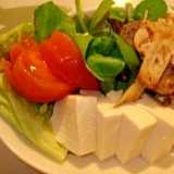 塩豆腐って モッツアレラみたいって言う人もいるけどやっぱり 豆腐だね(苦笑)でも 塩つけて一晩置くと 程よく水分が抜けて良い感じ!!ジェノベーゼとトマトは良く合うから茅乃舎の『まるごとトマトドレッシング』は、バッチリ合う。フルーツトマトは、八百屋のお兄さんに勧められたもの。美味しい!!味が濃い! 塩豆腐とジェノベーゼを使ったサラダ料理名:豆腐の洋風サラダ作者:東京くま■材料(2人分)豆腐 / 1/2丁フルーツトマト / 1/2個クレソン / 1/2束ルッコラ / 1/2束サニーレタス / 3枚マッシュルーム / 3個ジェノベーゼソース / 大さじ2まるごとトマトドレッシング(市販) / 適量塩豆腐用の塩 / 小さじ1■レシピを考えた人のコメント豆腐を洋風サラダに!ジェノベーゼは、マッシュルームと和えて!!詳細を楽天レシピで見る━━━━━━━━━━━━━━━━━━…↓↓ ポイントが貯まるレシピ サイト ↓↓>>最短約 30 秒!▼無料▼会員登録<<━━━━━━━━━━━━━━━━━━…
