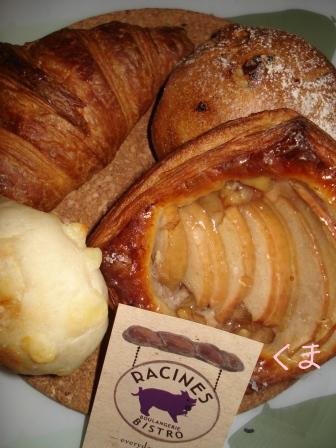 20年来の友人と久々にランチ。池袋にある『 RACINES 』というビストロに連れて行ってもらった。パン屋も併設してる。11時オープンだけど 長蛇の列。サラダランチを注文したんだけど野菜は、てんこ盛り!しかも野菜の種類が多い。 この店 かなり優秀 池袋は、あまり行かないので3年ぶり・・この店 目当てに また行くぞ!!!パンを買った。 リンゴのヴィエノワズリー!かなり美味しい!!しかも パンが安い。この4つで 600円。家の近所に オープンして欲しいなぁ(笑) 連れてってくれて ありがと。ゆ~。さん。