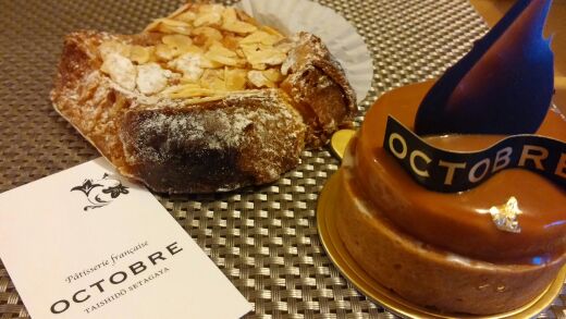オクトーブルの ボストックとタルト。 ボストックって、甘~~いので最悪感たっぷり💦 タルトは、バター効いてて香りも良いわ。 満足の二品