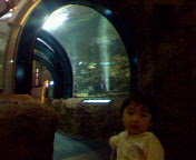 今日の息子(1歳11ヵ月)は、とても疲れて眠りました。理由は、水道局の自然観察博物館に連れて行ったからです。以前の日記でも書きましたが、ここはとても穴場なので、ちょっと遠いのですが、行って来ました。自然観察博物館に入るのは無料です。そのうえ、ガラガラに近いので、のんびりゆったり、淡水魚の観察なんかが楽しめます。息子はあっちに行っては、こっちに来て。と言った感じで、あっちの魚の水槽をチラッと見ては、違う水槽の魚を見学していました。効率の悪い見方でしたが、ガラガラの施設内、誰かにぶつかる心配もなく、楽しそうに歩き回っては、私や夫に水槽の中の魚を指差しで教えてくれる息子に、思わず笑みが浮かびました。ドーム状になっていて、上を泳ぐ魚も観察できます。ドームの中で撮影しました。後ろを泳ぐ魚が見えますか?どの魚も、淡水魚なので、地味ですが、大きさや種類は沢山あるようです。それ以外にも、水の仕組みや、水道の蛇口部分の変化の展示もあります。水道局ですから、昔の水道局の原点を展示しているコーナーもあるのですが・・・以前の日記でも書いたとおり、とてもオドロオドロした人形が置かれています。かなりの怖さに、近寄る子供はほとんどいません。写真をのせようと、夫にとってと頼むと断られました。理由は、「不気味だから嫌」だそうです。確かにねえ、不気味だもんねぇ。そうはっきり言われると、仕方がないので諦めました。息子は、はしゃぎまわり、よく運動したので、帰りの電車では、ぐっすり眠ってしまいました。さすがに疲れたようなので、そのまま寝かせておきました。本当は、3時以降の昼寝は避けるべきなんですが・・・本日の息子の就寝時間は、午後8時30分。いつもよりも、少し遅いのは(最近は8時前に寝ていました)昼寝のせいかなぁ?楽しかったのか、帰ってからも興奮していたし、興奮して眠れなかったのかも?