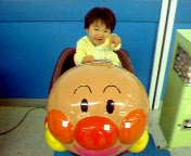 少し遠いのですが、電車で大型スーパーに行って来ました。ここでの目的は、小さな子供向けの乗り物があるパーク遊園地です。小さなメリーゴーランドが真ん中にあって、すべての馬や馬車等に総勢12人が乗れるようになっています。といっても、乗りたい時に券を買うと、総合カウンターにいるお兄さんが飛んできて、乗り込んだところでメリーゴーランドが回り出します。遊園地のメリーゴーランドの小さい盤ですね。小さい子だけしか乗れないサイズなので、息子を乗せて、補助に横で支えるために立っていた私。息子は最初こそは、手をつかむ場所をしっかり持っていましたが、マイクで注意が始まったとたんに、手を離して私にしがみついてきました。慌てて、手を持つように促しましたが、うまくいかず、店員さんは、スタートを押したくても押せずに、様子を見ている感じでした。そんなわけで、どうにか、スタートしたメリーゴーランド、私の予想通り動き出すと、息子はしっかりバーをつかんで、きょとんとした顔。(初体験の時はこんな顔をします。嫌な場合は、やっぱり大泣きですから)10回ぐらい回って、私たちの様子を見ている夫に何度も手を振ってご機嫌でした。メリーゴーランドの後は、アンパンマンの乗り物ばかりを集めたコーナーに行き、そこで、ハンドルを回すと、あがったり下がったりする、アンパンマン号(けっこう高く上がるのでちょっと怖かった・・・シートベルト付だったし・・・)に乗ったり。前後に揺れるアンパンマンに乗ったり、その他8種類ぐらいの色んな種類のアンパンの乗り物に乗れたので、息子は大満足の様子。でも、何種類かの乗り物には、乗車拒否をしましたが(笑)普段はこんなに豪遊(ほとんど200円だし)させませんが、実家の母に遊びに行くと話したら、500円玉を6枚息子にお小遣いとして乗り物代をくれたので・・・飛んでいるアンパンマンの背中に乗っています。それにしても、このアンパンマンの乗り物シリーズ(?)最初か最後に、、アンパンマンのキャラクターが描かれた飴が1つ入っている小さなカプセルが出てきます。乗ってくれた子供へのお土産ってことなんでしょうね。(ちょっと得した気分)息子は飴がまだ食べれませんが、飴にキャラクターが描かれているのに毎回興味深々。(単純にカプセルも好きです)ただ、一度もアンパンマンのイラストが出たことがないんですよね。アンパンマンだけ他のよりも沢山作ってくれたらよいのに。そしたら、必ずアンパンマンだって、喜んで教えてくれるのになぁ~。アンパンマンには、沢山のキャラクターが出ていますが、アニメにはあまり興味を示さない息子と、詳しくない私には、どんなキャラクターなのか謎で終わる場合の方がはるかに多いんですよね。明日ゲットした飴は、実家にもって行って、報告するつもりです。(夫も私も飴は食べないので、実家の両親に食べてもらっています。)私の小さい頃って、あんまりお金のかかる乗り物には乗せてもらったことがなかったのに、孫になると、とたんに財布の紐が緩んでしまうのが、祖父母なんでしょうね。
