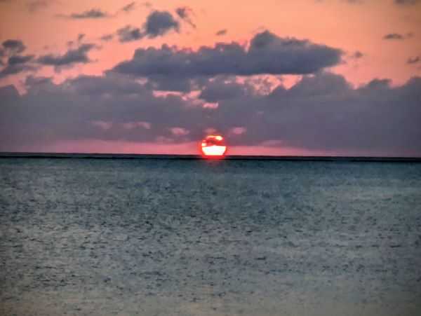 はるか遠くに見えますが、実は夕日がとてつもなく大きかったんです。丸ごと撮れなくて残念でしたが、あれよあれよと思う間に沈んでしまいました。