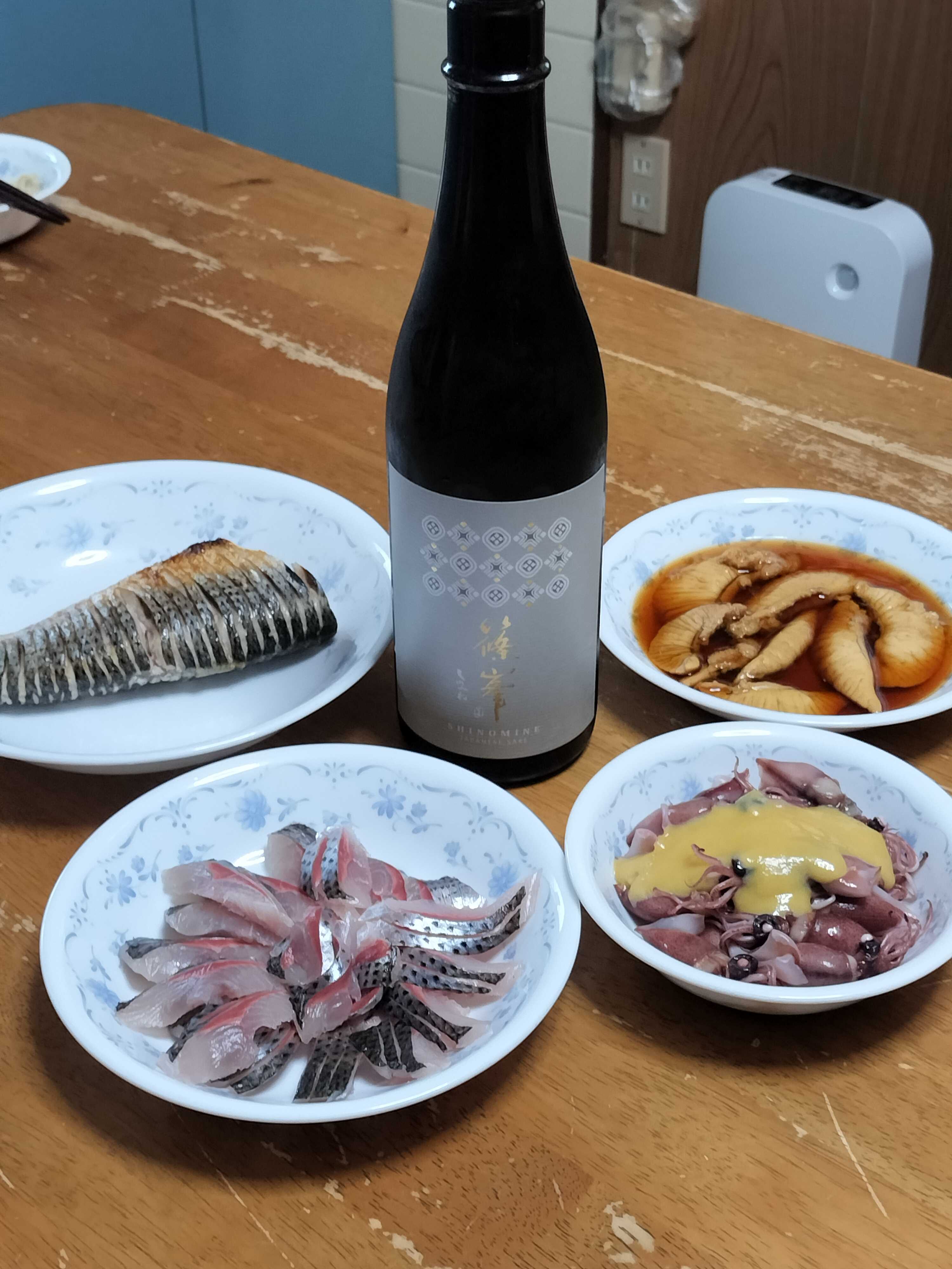 甲イカの刺身 東一ひやおろしで 2024/10/26