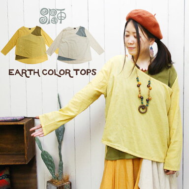 エスニック 長袖 レディース SPTアースカラーの変形トップス 2020年秋冬新作【ネコポスOK】■《アジアン ファッション エスニック ファッション エスニック トップス レディース カットソー フェス 秋服 ladies ethnic tunic》