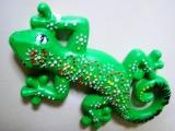 彼氏からもらったサイパン土産だよ! ほんとはやもりらしいよ! すごい配色だがこれよりもっとすごい色のオレンジももらったよ! 冷蔵庫に貼ってるよ! 帰宅してこれ見るとちょっと元気出るよ!