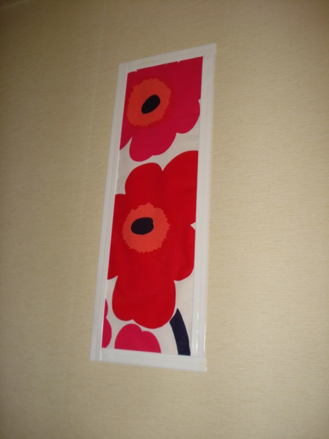 ウニッコの柄の大きい方ですねハーフアンドハーフ 50cm1313円これは丁度、500円くらいでしょうか?テープはお風呂の修理用テープ これが800円コンクリなので釘が打てず、この形にしましたみなには好評です、玄関にあります
