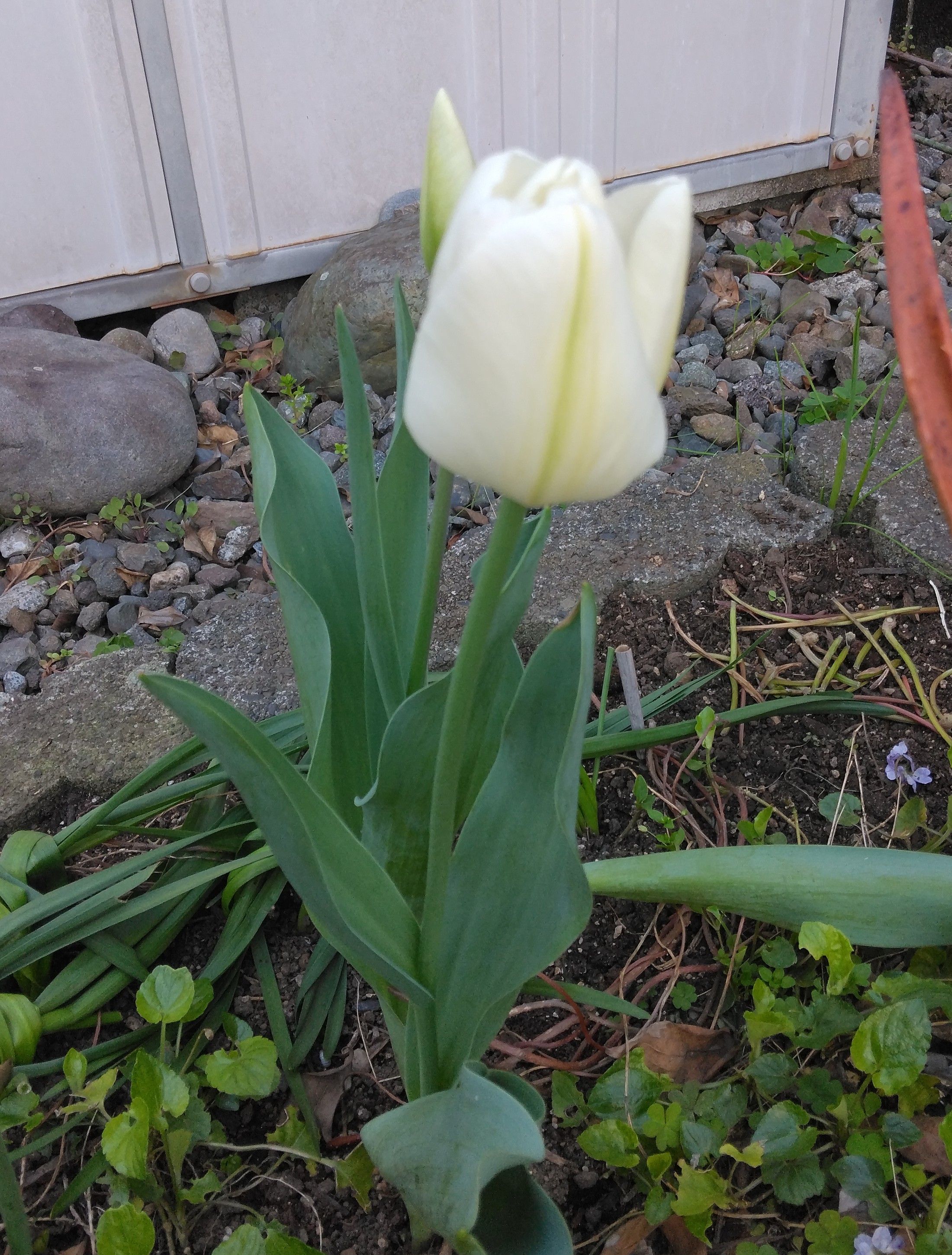 チューリップの球根は、昨年春に咲いた物の球根と昨年秋に新しく買った物を、特に区別しないで混ぜて植えていたはずだったのですが、どうやらこちらの花壇は昨年春に咲いたチューリップの球根だったようです(昨年のチューリップのブログはこちら→ 2024.3.30