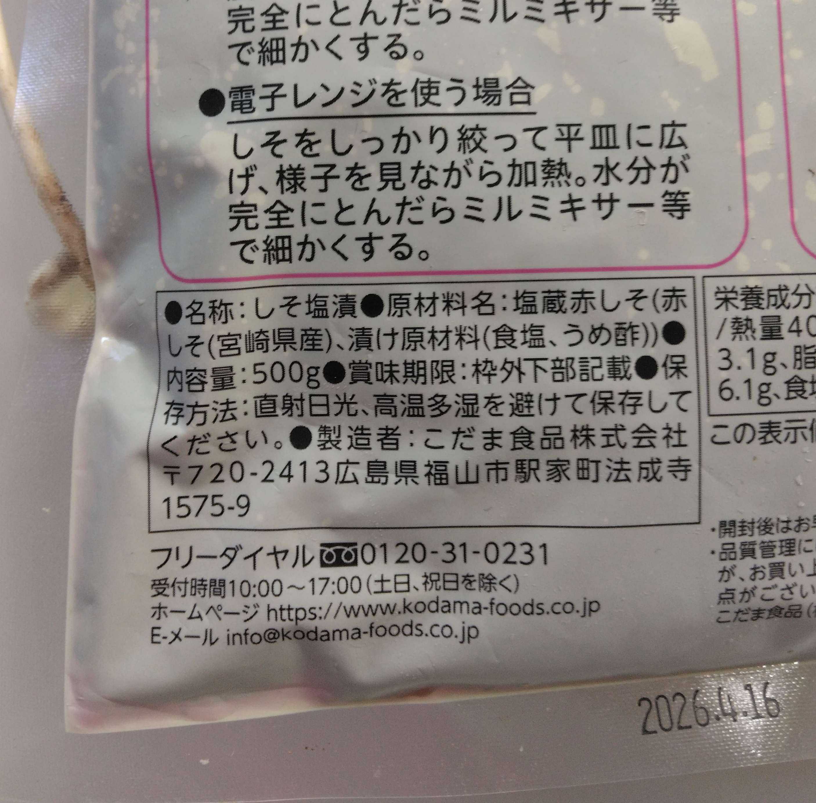 材料は、赤紫蘇・食塩・梅酢と家庭で作る時と同じ物