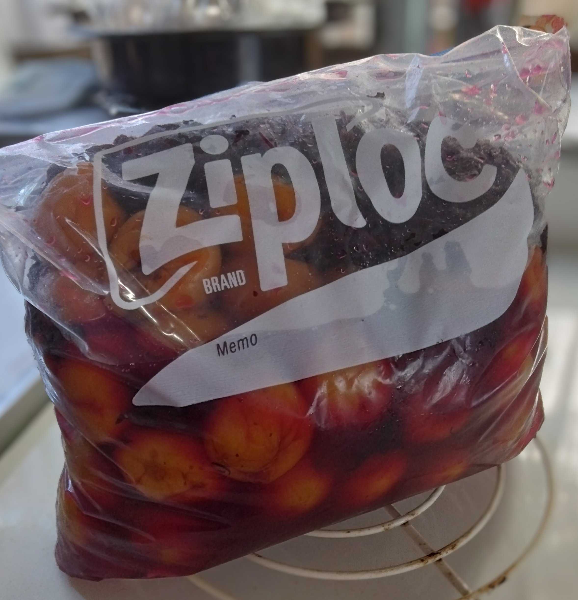 今年は他の保存食や化粧水の素で瓶が空いていなくて、ジップロックを使いました![]()
